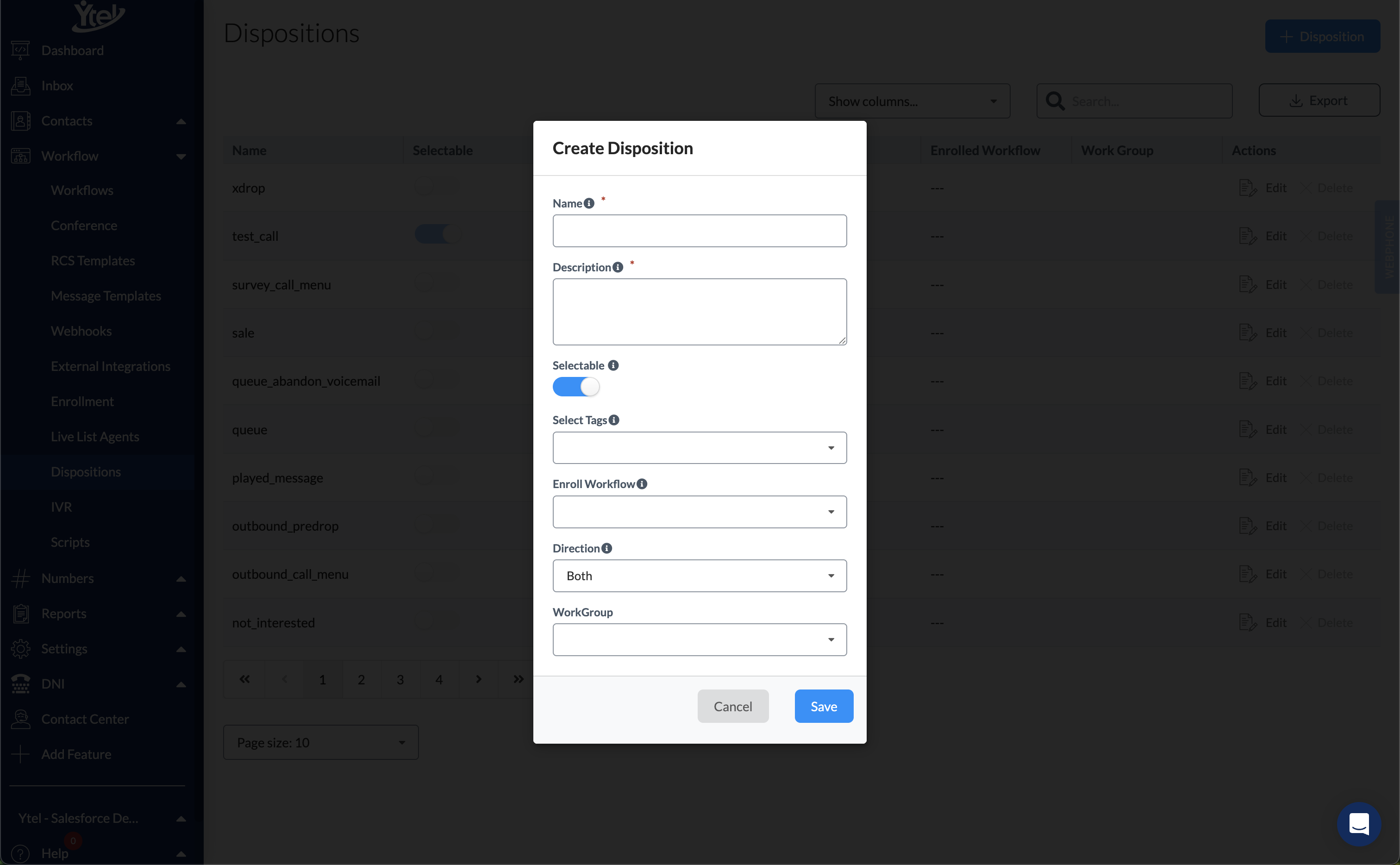 - Export: Export your dispositions to CSV.